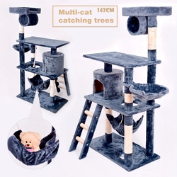 برج قطط كلاسيكي من GMTPET، أثاث للقطط، شجرة للقطط من الخشب والسيزال، تغليف كرتوني، 141 سم، 4 مستويات، تصنيع حسب الطلب، بيع بالجملة